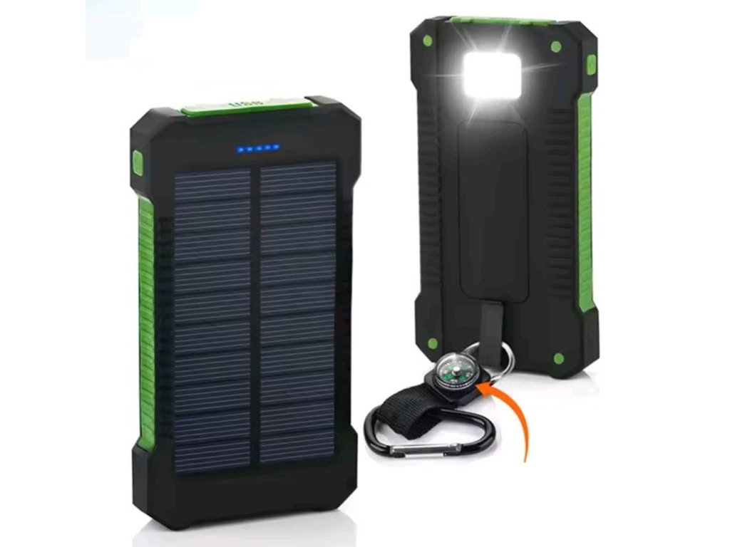 Solárna powerbanka s kompasom a baterkou vodovzdorná